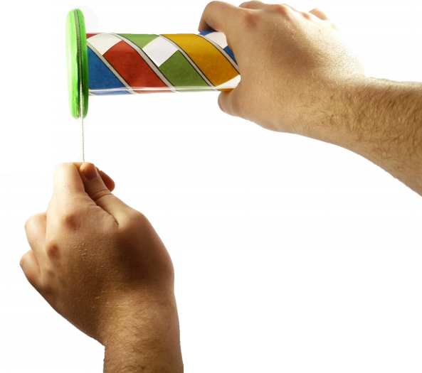 Door een koord (starter) om de voorste ring te binden en deze hard aan te trekken, krijg je een draaiend moment. De natuurwetten bij een draaiendmoment schrijven voor dat deze het liefst over het middelpunt voortbeweegt. Dus dankzij dit moment zal de gyro flyer langer in een rechte lijn vliegen, de zwaartekracht trekt nog steeds het product naar beneden maar door de grote staart en de richting van het product zal deze makkelijker vooruit vliegen dan vallen.